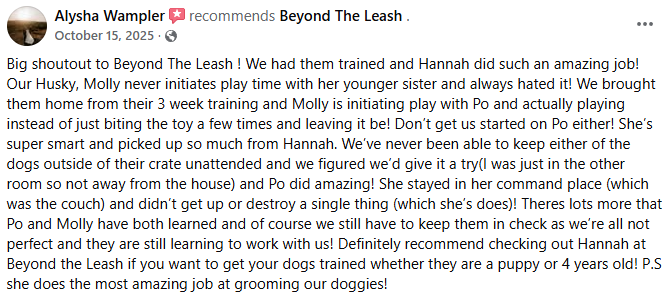 We offer expert dog training services in: